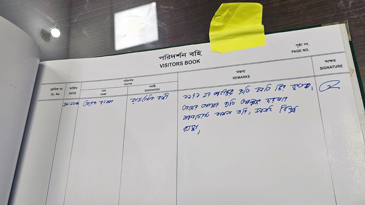 এ সময় তারেক রহমান পরিদর্শন বইয়ের তারিখের স্থানে বাংলায় ২৬-১২-২০২৫ এবং নামের স্থানে তারেক রহমান লিখেছেন। এ ছাড়া, পদবীর ঘরে তিনি 'রাজনৈতিক কর্মী' লিখেছেন। এরপর মন্তব্যের ঘরে তিনি লিখেছেন, ১৯৭১-এর শহীদের প্রতি জাতি চির কৃতজ্ঞ। তাদের আত্মার প্রতি আল্লাহর দরবারে মাগফেরাত কামনা করি। জানাই বিনম্র শ্রদ্ধা'। পরে স্বাক্ষর করেন তিনি।