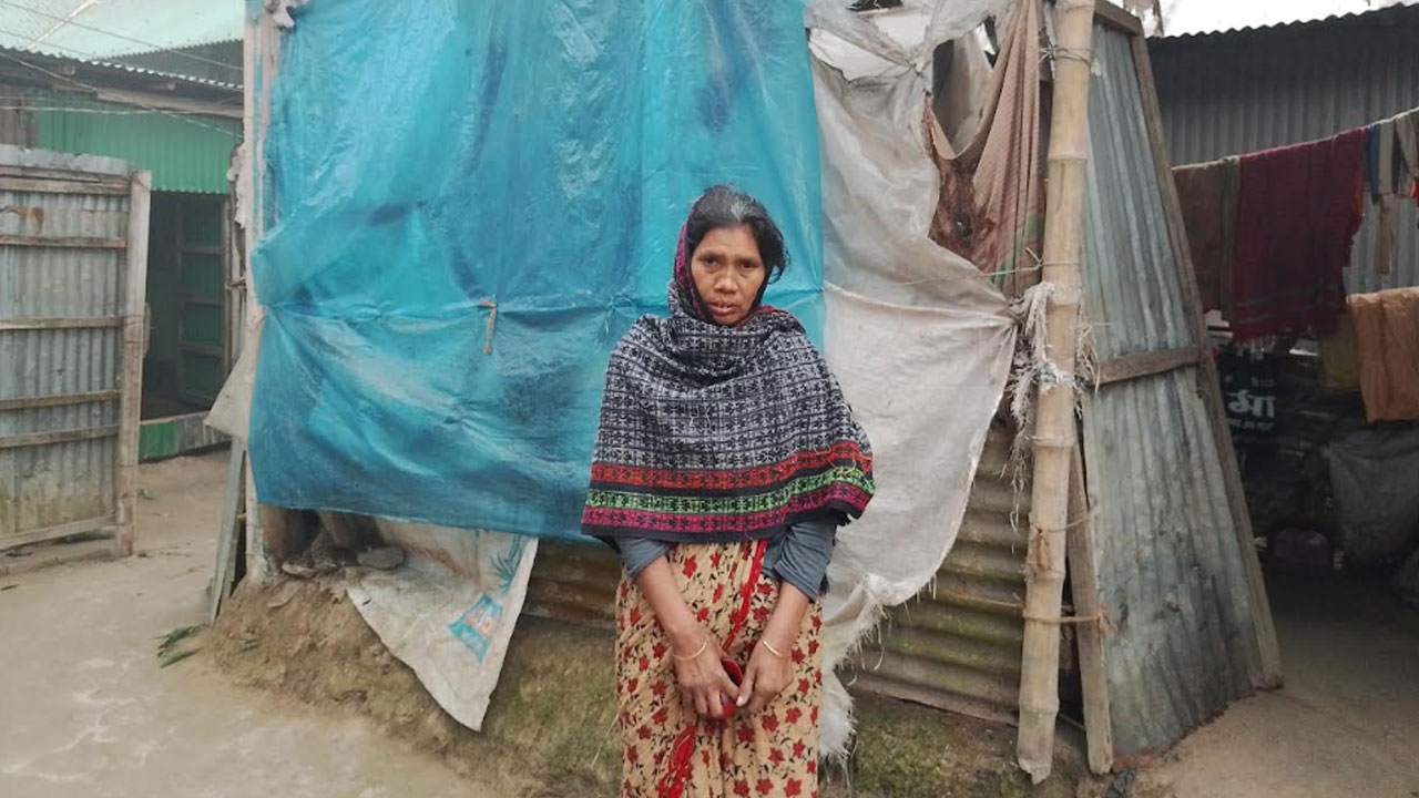 নিয়তি রাণী মহন্ত (৬২) বলেন, শীত ও ঠান্ডায় ঘরে থাকা যায় না। প্রায় ১৫ বছর আগে আমার স্বামী মারা যায়। মারা যাওয়ার পর মানুষের বাড়ি বাড়ি গিয়ে কাজ করে তিন মেয়েকে বিয়ে দিয়েছি। এখন ছোট ছেলেকে নিয়ে কোনো রকমে বেঁচে আছি। কেউ খোঁজ খবর নেয় না। এহনা টিনের ছাপড়া দিয়ে ঘরের চারপাশে পলিথিন দিয়ে আছি। এই শীতে ঘরে থাকাটা মুশকিল হইছে। চেয়ারম্যান ও মেম্বারের কাছে গেছিলেম একটা বিধবা ভাতা করার জন্য। কিন্তু কোনো লাভ হয়নি। শীত যাচ্ছে এ পর্যন্ত কম্বলও পাই নাই।