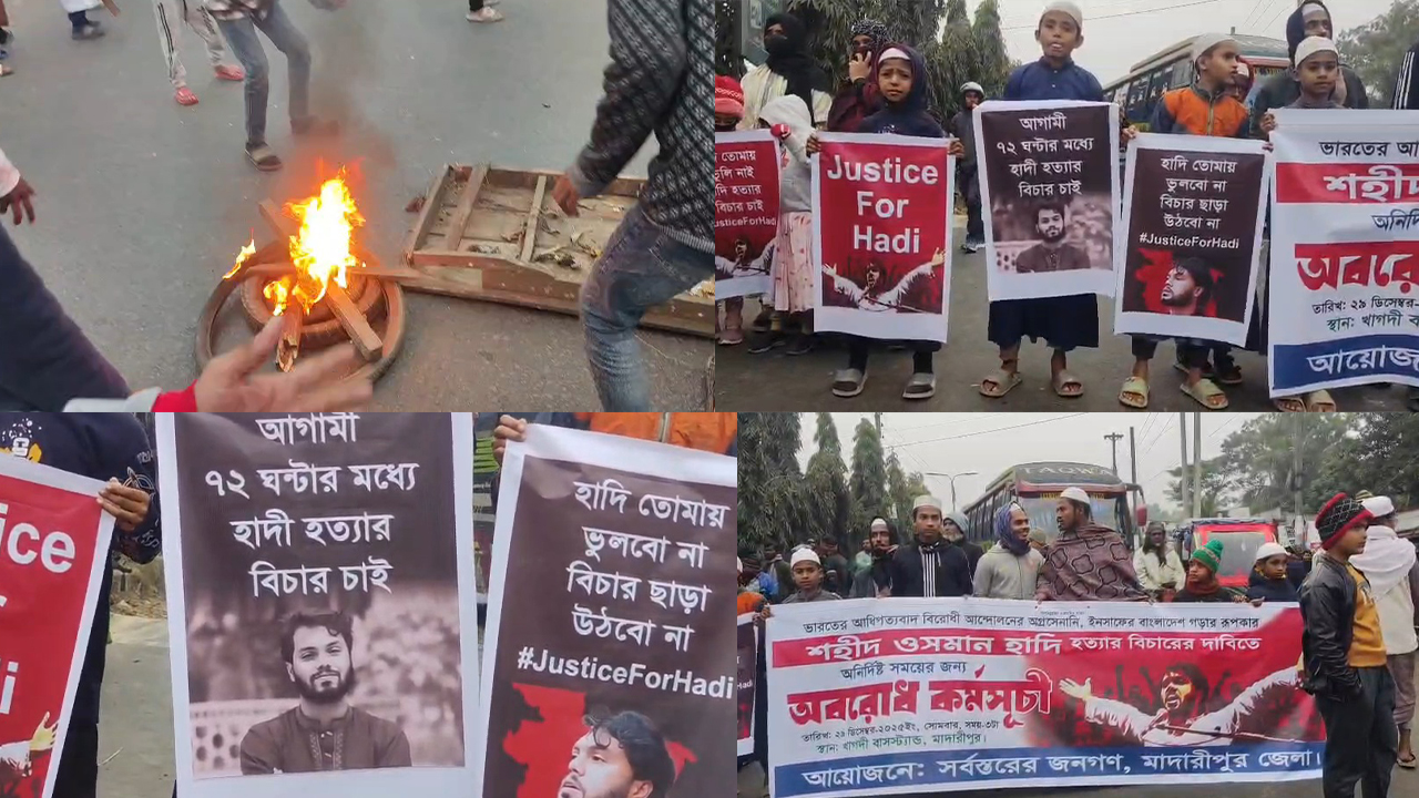 শহীদ ওসমান হাদি হত্যার বিচার দাবিতে মাদারীপুরে মহাসড়ক অবরোধ