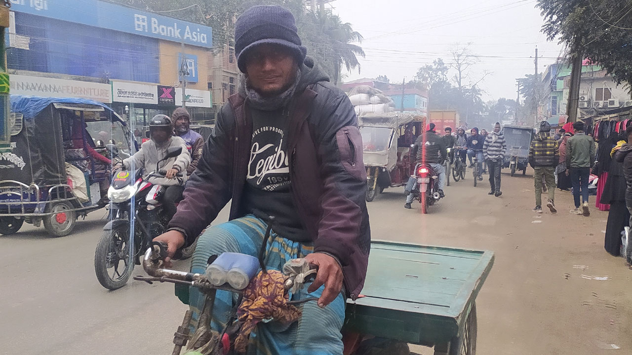 ভ্যানচালক ফিরোজ বলেন, আজ কুয়াশা নাই, কিন্তু বৃষ্টির মতো পানি পড়তেছে। ভ্যান চালালে শরীর ভিজে যায়। এই অবস্থায় ভ্যান চালাতে হচ্ছে। না চালালে খাব কী?