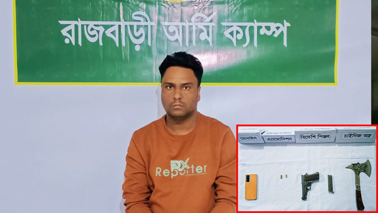 রাজবাড়ীতে অবৈধ বিদেশি আগ্নেয়াস্ত্র ও গুলিসহ যুবক গ্রেপ্তার