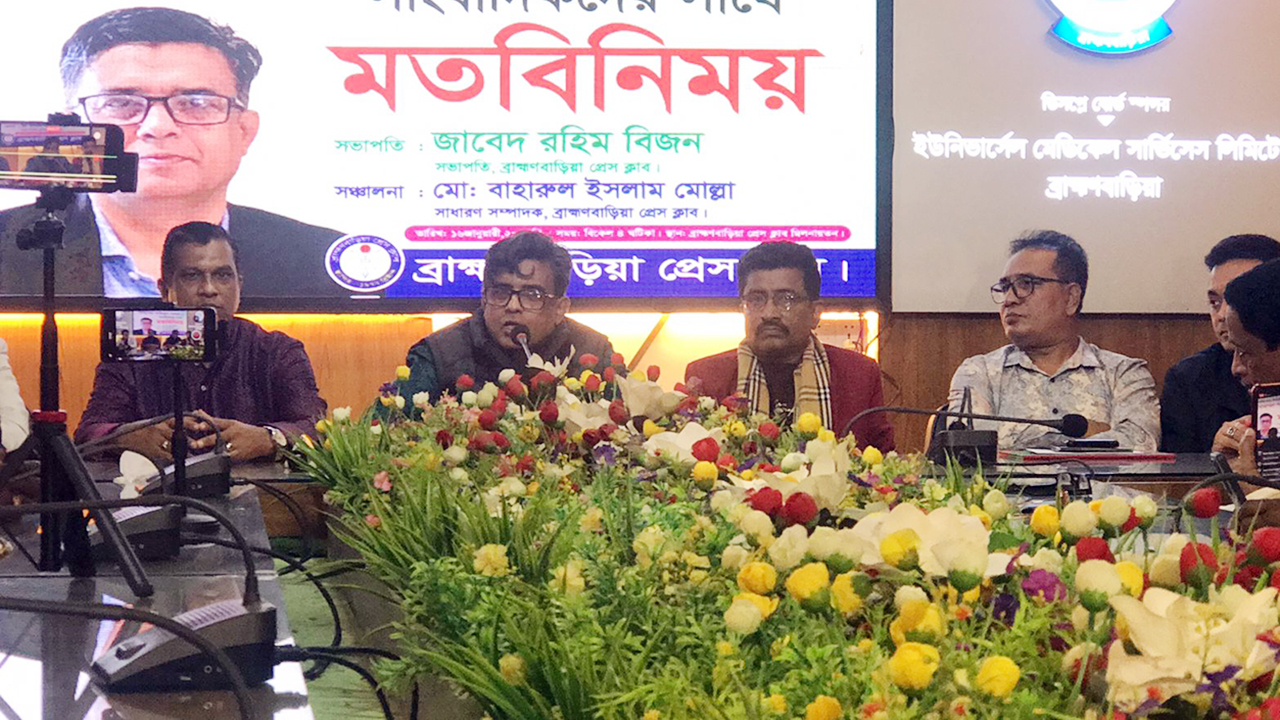 শুক্রবার (১৬ জানুয়ারি) বিকেলে ব্রাহ্মণবাড়িয়া প্রেসক্লাব মিলনায়তনে আয়োজিত এক মতবিনিময় সভায় সাংবাদিকদের সঙ্গে তিনি এসব কথা বলেন। এ সময় ব্রাহ্মণবাড়িয়া প্রেসক্লাবের সভাপতি জাবেদ রহিম বিজনের সভাপতিত্বে স্বাগত বক্তব্য দেন সাধারণ সম্পাদক বাহারুল ইসলাম মোল্লা।