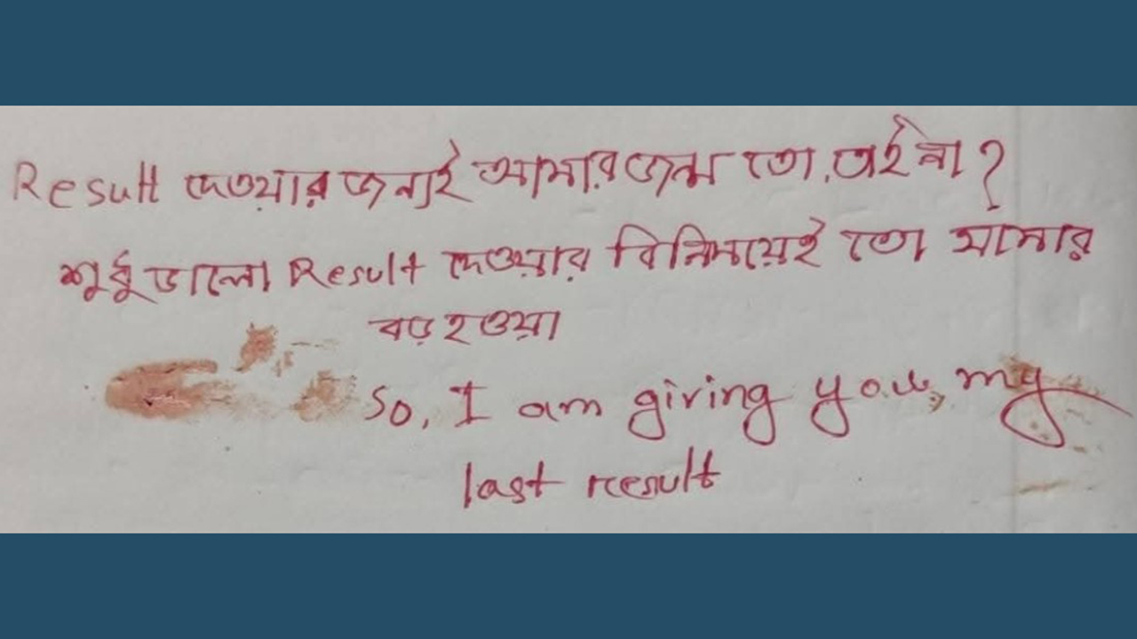 ‘রেজাল্ট দেওয়ার জন্যই কি আমার জন্ম’ চিরকুট লিখে শিক্ষার্থীর আত্মহত্যা