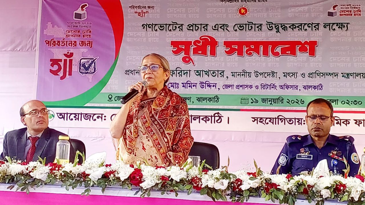 সোমবার (১৯ জানুয়ারি) বিকেলে ঝালকাঠি জেলা প্রশাসন শিশু পার্ক প্রাঙ্গণে গণভোটের প্রচার ও ভোটার উদ্বুদ্ধকরণ উপলক্ষে আয়োজিত সুধী সমাবেশে প্রধান অতিথির বক্তব্যে তিনি এসব কথা বলেন।