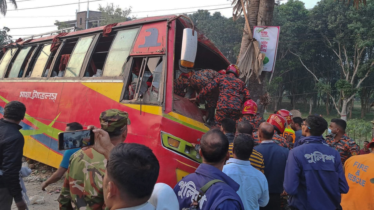 পাশ কাটাতে গিয়ে তালগাছে ধাক্কা, অল্পের জন্য প্রাণে বাঁচলো ৪০ জন যাত্রী