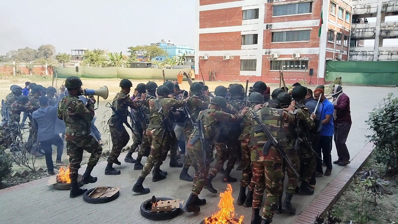 বৃহস্পতিবার (৫ ফেব্রুয়ারি) কালিগঞ্জ সেনা ক্যাম্পে আয়োজিত এ মহড়ায় দেখানো হয়, কিভাবে সন্ত্রাসী পরিস্থিতিতে সেনাবাহিনীর চৌকস সদস্যরা দ্রুত অভিযানে নেমে ভোটকেন্দ্র দখলমুক্ত করেন এবং নিরাপদে জিম্মি প্রিজাইডিং অফিসারকে উদ্ধার করেন। পুরো অভিযানটি ছিল সময়োপযোগী ও কৌশলগত দক্ষতায় পরিপূর্ণ।