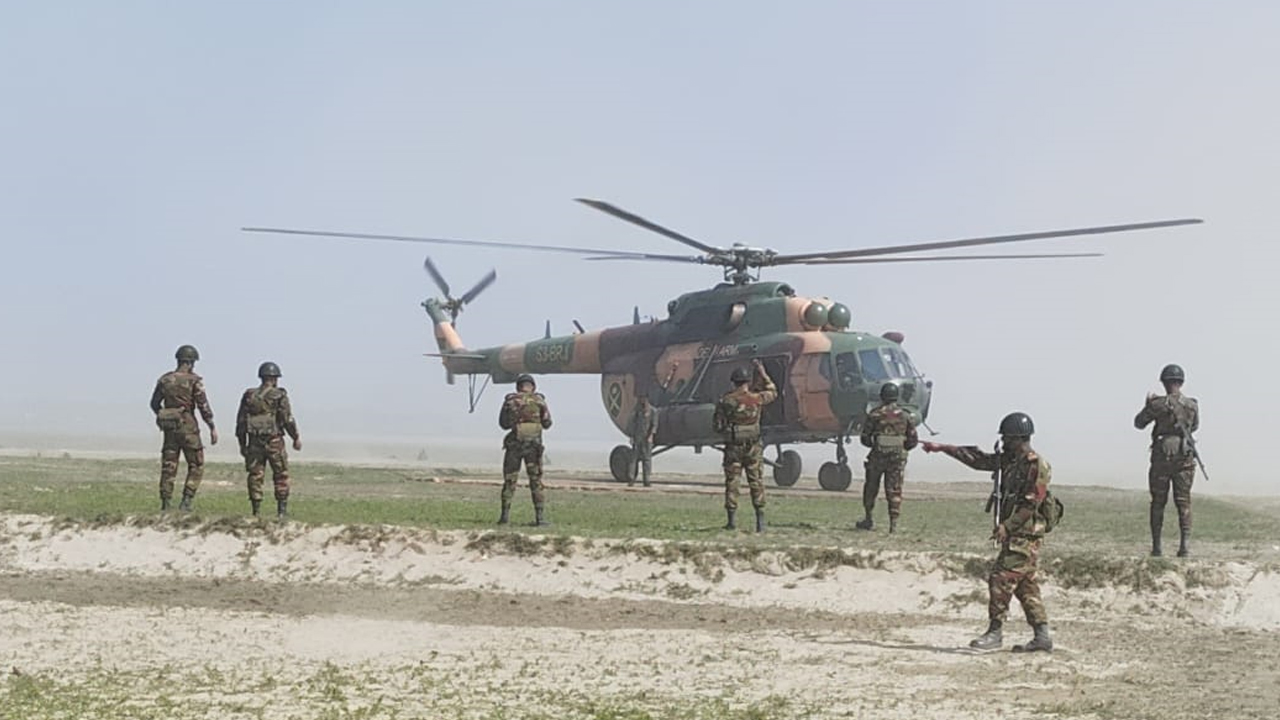 বৃহস্পতিবার (৫ ফেব্রুয়ারি) দুপুর ১২টায় উপজেলার নয়ারহাট ইউনিয়নের চরাঞ্চল ও নদীবেষ্টিত খেরুয়ারচর এলাকায় হেলিকপ্টারযোগে এসে বাংলাদেশ সেনাবাহিনী আকাশ পথে এ মহড়া পরিচালনা করে।