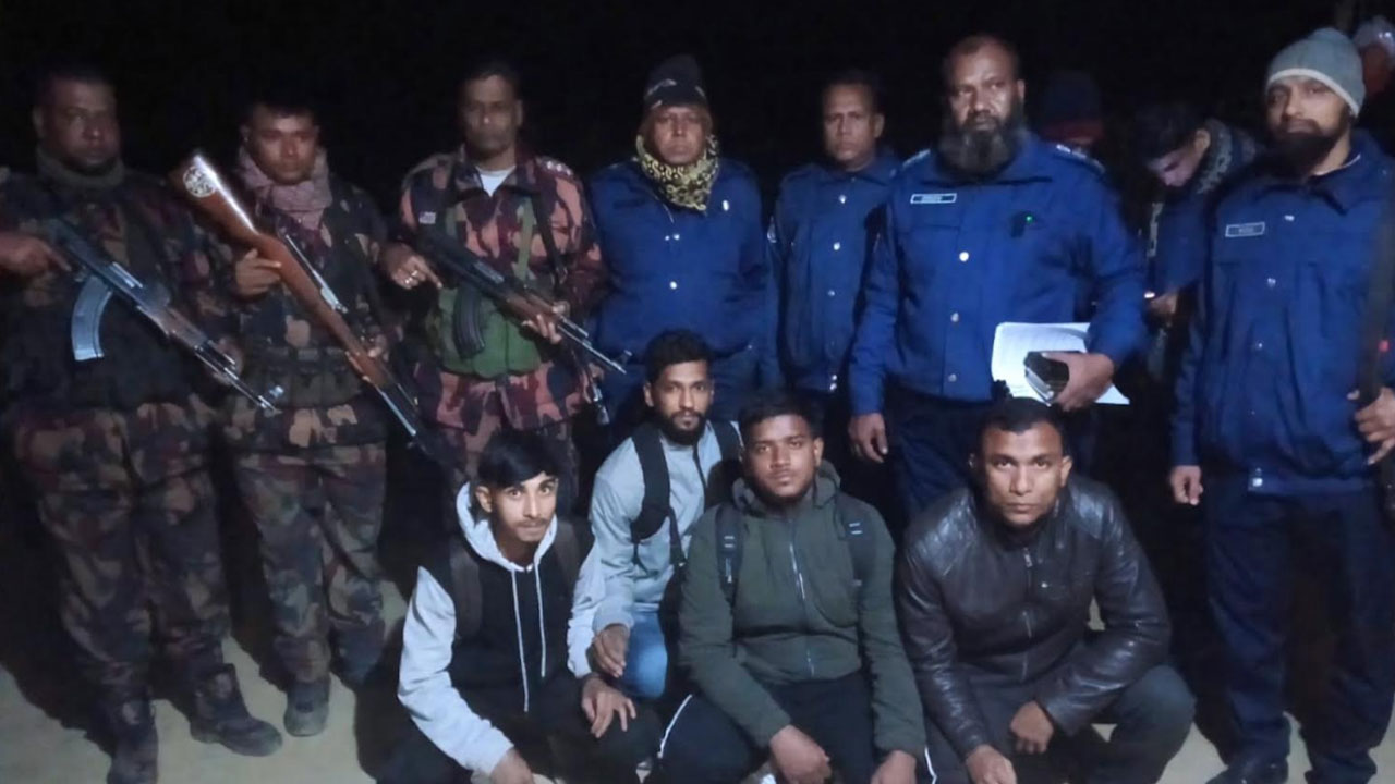 ফেনীর পরশুরাম সীমান্ত দিয়ে অবৈভাবে প্রবেশের চেষ্টাকালে চার বাংলাদেশি যুবককে আটক করেছে বর্ডার গার্ড বাংলাদেশ (বিজিবি)। তারা পর্তুগাল অ্যাম্বাসিতে যাওয়ার উদ্দেশ্যে দালালের মাধ্যমে অবৈধভাবে ভারতে প্রবেশের চেষ্টা করছিল।