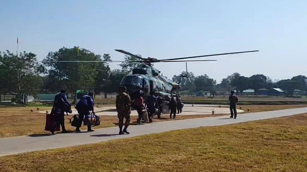 খাগড়াছড়ির ৩টি দুর্গম কেন্দ্রে হেলিকপ্টারে পৌঁছেছে নির্বাচনী সরঞ্জাম