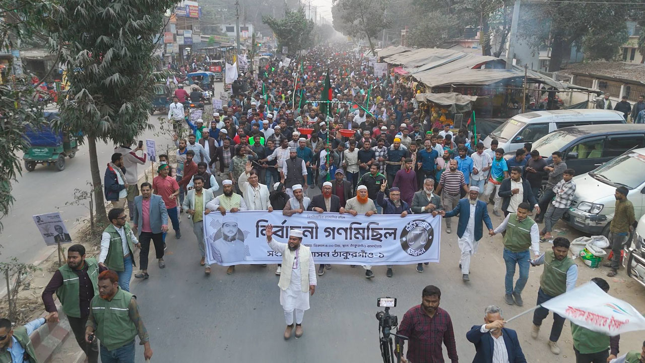 আসন্ন ত্রয়োদশ জাতীয় সংসদ নির্বাচনকে সামনে রেখে ঠাকুরগাঁওয়ে জামায়াতে ইসলামীর উদ্যোগে একটি নির্বাচনী গণমিছিল অনুষ্ঠিত হয়েছে। প্রচারণার শেষ দিনে আয়োজিত এ গণমিছিলে হাজারো মানুষ অংশ নেয়। নেতাকর্মী ও সমর্থকদের উপস্থিতিতে শহরের বিভিন্ন সড়কে ব্যাপক জনসমাগম লক্ষ্য করা যায়।