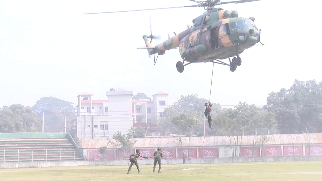 এছাড়া চিলমারী উপজেলার ব্রহ্মপুত্র নদ দ্বারা বিচ্ছিন্ন নয়ারহাট ইউনিয়নের খেরুয়ার চরে হেলিকপ্টার মহড়া অনুষ্ঠিত হয়েছে।
