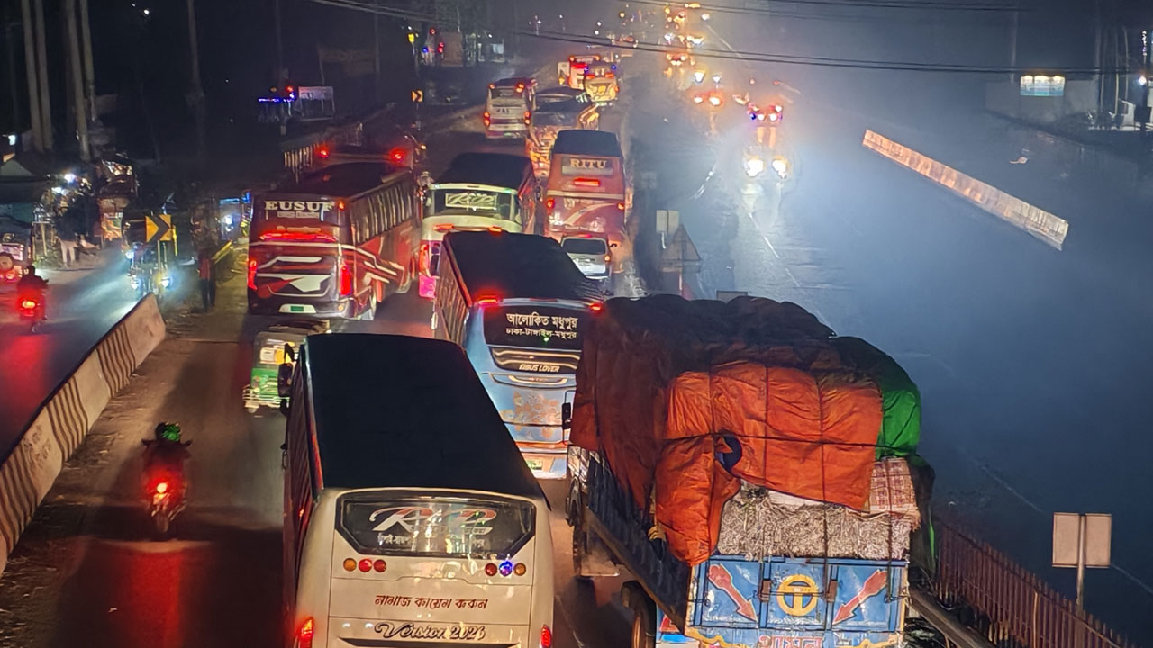 ঢাকা-টাঙ্গাইল মহাসড়কে যানবাহনের চাপ, থেমে থেমে যানজট