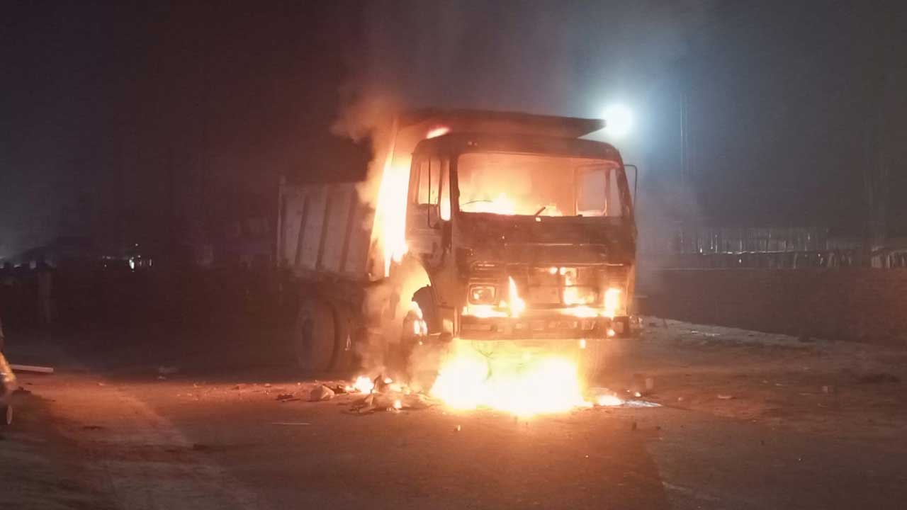 সড়কে নিহত দুই, ট্রাকে আগুন দিলো বিক্ষুব্ধ জনতা