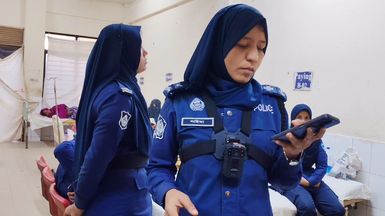 দুপুরে হাসপাতালে গিয়ে দেখা যায়, এসআই সায়মার নেতৃত্বে একজন নারী এএসআই, দুইজন নারী কনস্টেবল ও তিনজন পুরুষ কনস্টেবল ভুক্তভোগীর কেবিনের সামনে নিরাপত্তায় রয়েছেন।