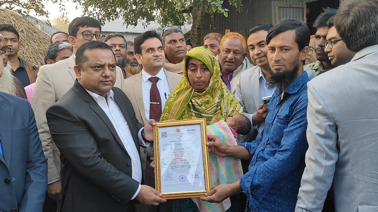 রোববার (১৫ ফেব্রুয়ারি) বিকেলে সিরাজগঞ্জের জেলা প্রশাসক মো. আমিনুল ইসলাম বেঙনাই গ্রামে নবজাতকের বাড়িতে যান। তিনি শিশুর শারীরিক অবস্থা সম্পর্কে খোঁজখবর নেন এবং প্রসূতি মা ও নবজাতকের জন্য নগদ অর্থ ও উপহার সামগ্রী প্রদান করেন। পাশাপাশি মায়ের হাতে বাঁধাই করা একটি ইউনিক নম্বর সম্বলিত জন্মসনদও তুলে দেওয়া হয়।