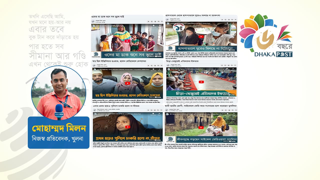 ২০২১ সালের ১৬ ফেব্রুয়ারি আনুষ্ঠানিক যাত্রা থেকে শুরু করে গুটিগুটি পায়ে ৬ বছরে পদার্পণ করেছে প্রিয় প্রতিষ্ঠান ঢাকা পোস্ট। শুরু থেকেই এই প্রতিষ্ঠানে নিজেকে আকড়ে ধরে রাখার চেষ্টা করেছি। গেল চার বছরে সমাজের নানা অসঙ্গতি, মানুষের অসহায়ত্ব, দুর্নীতি-অনিয়ম, রাজনৈতিক পরিস্থিতি, সুন্দরবনের জন্য হুমকিসহ জীব-বৈচিত্র, প্রাণ-প্রকৃতি নিয়ে প্রতিবেদন, প্রাকৃতিক দুর্যোগ, উপকূলের মানুষের অবস্থা সরেজমিন প্রতিবেদন, খেলাধুলা, বিনোদন, অগ্নিকাণ্ড, উদ্ভাবনী সফলতা, তরুণ উদ্যোক্তা, অর্থনীতি, মৎস্য, কৃষি, উন্নয়ন, অসঙ্গতি সব কিছুই পাঠকের কাছে তুলে ধরেছি ঢাকা পোস্টের মাধ্যমে। আর এই সময়ে প্রতিষ্ঠানের জন্য কাজ করতে গিয়ে নিজের সফলতার পাল্লাটাও ভারি হয়ে যায়।