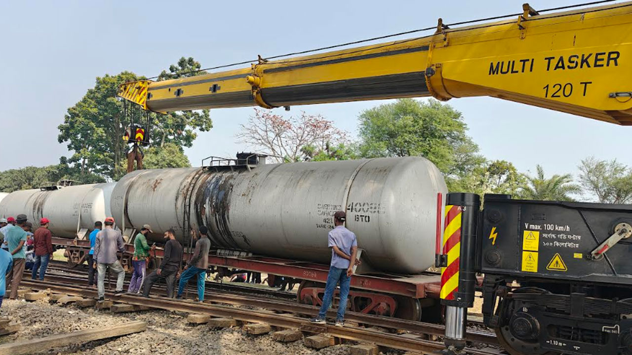 চাঁপাইনবাবগঞ্জে তেলবাহী ট্রেন লাইনচ্যুত, চলছে উদ্ধার কাজ