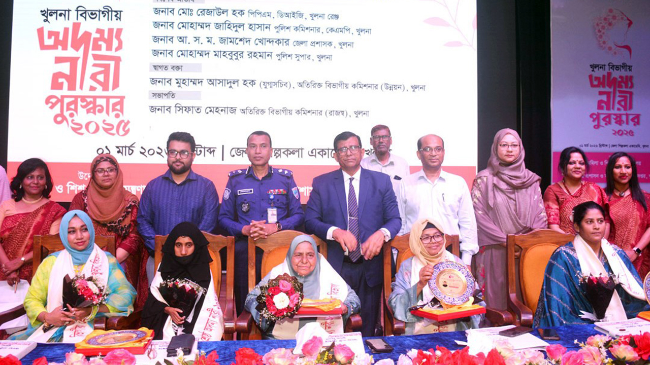 খুলনা বিভাগীয় পর্যায়ে পাঁচ শ্রেষ্ঠ অদম্য নারীকে পুরস্কার ও সম্মাননা প্রদান করা হয়েছে। রোববার (১ মার্চ) দুপুরে খুলনা জেলা শিল্পকলা একাডেমি অডিটোরিয়ামে তাদের এই সম্মাননা প্রদান করা হয়।