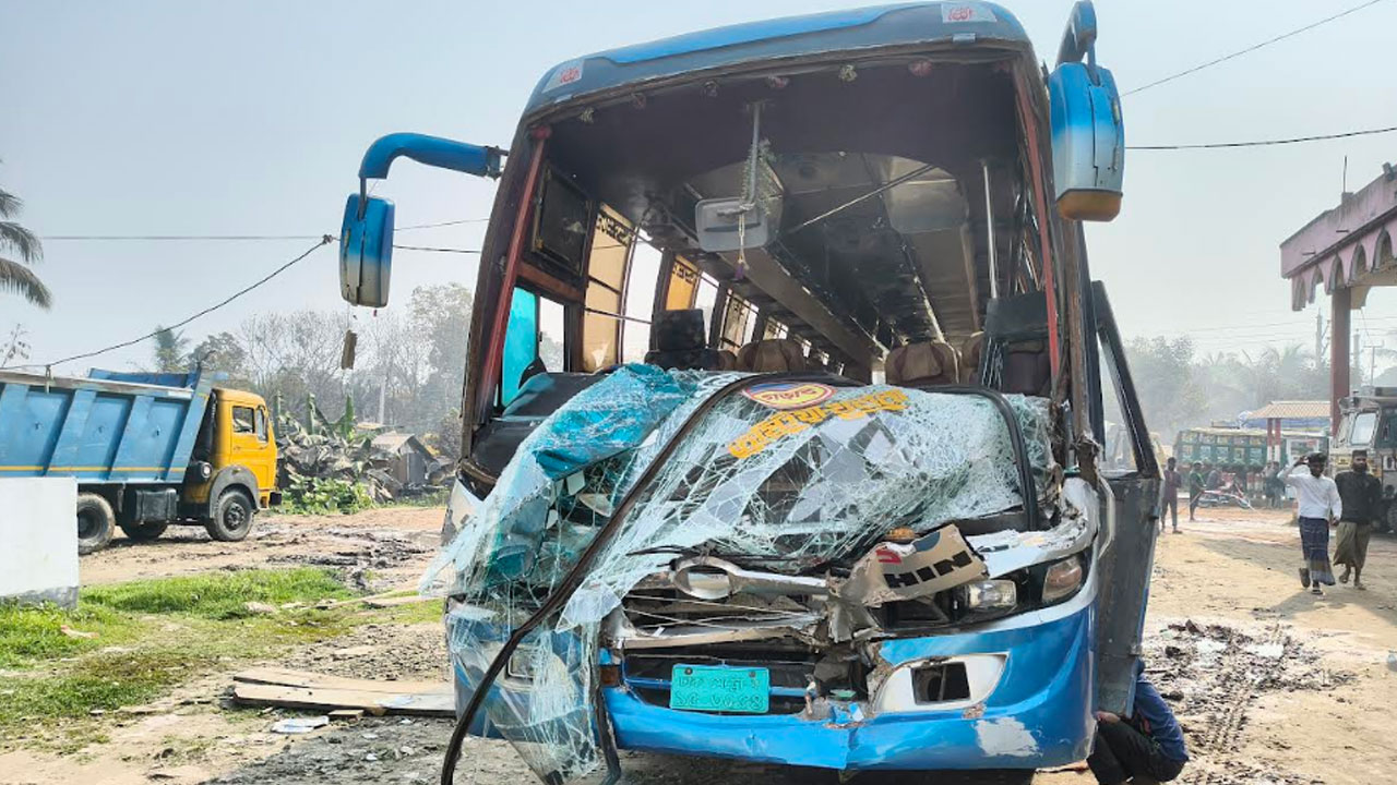 ঝিনাইদহে যাত্রীবাহী বাস নিয়ন্ত্রণ হারিয়ে ট্রাকে ধাক্কা