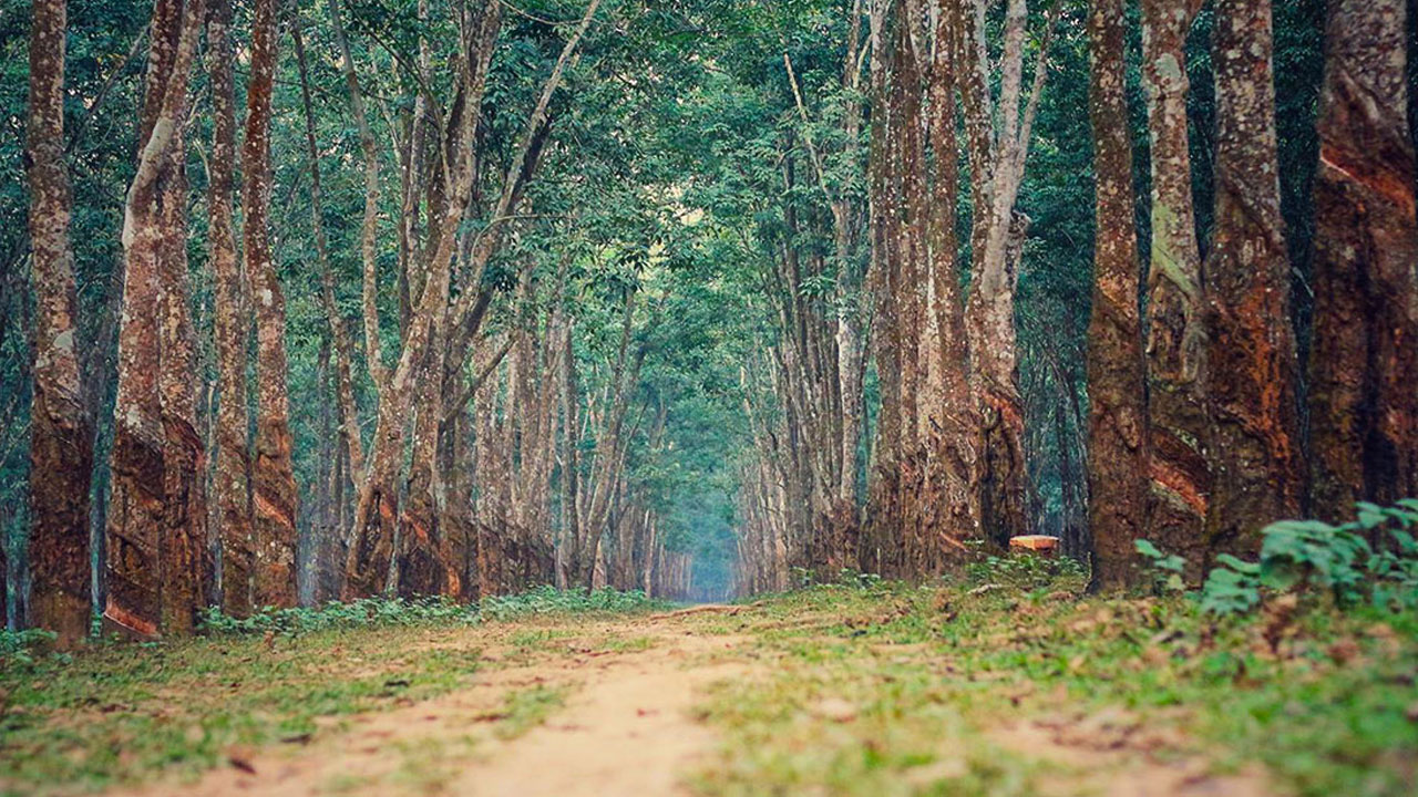 সুউচ্চ বৃক্ষের সারি, তাদের কাঁচা সবুজ রঙের পাতা। মনে হবে যেন স্কেল দিয়ে মেপে একই সমান্তরালে লাগানো গাছগুলো। যতদূর চোখ যায় শুধু গাছ আর গাছ। চারদিকে সবুজের সমারোহ। দেখলেই মন ভরে যায়। গাছগুলোর নাম রাবার গাছ। মধুপুরের পীরগাছা রাবার বাগানের এই সৌন্দর্য অকৃত্রিম। দুই ধারে হাজারো গাছ আর এরই মাঝখানে সুবিশাল পথ। পথ চলতে চলতে মনে হয়, এই পথ যদি শেষ না হতো।