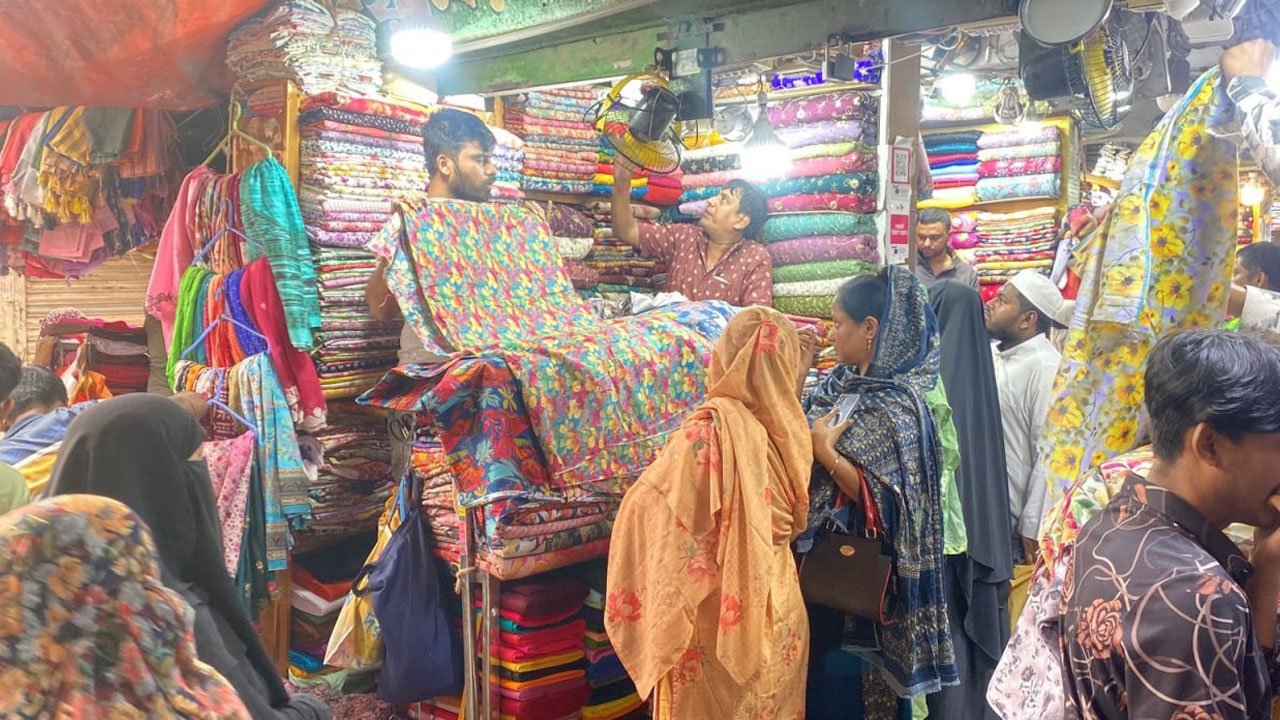 আলিকা প্রিন্ট শাড়ির স্বত্বাধিকারী সুলতান উদ্দিন সরকার বলেন, এ বছর শাড়ি থ্রি-পিসের হরেক রকম কালেকশন এসেছে। দামও হাতের নাগালে। পাইকাররা স্বাচ্ছন্দে কাপড় কিনছেন। আশা রাখছি এবারের ঈদে ভালো মুনাফা হবে।