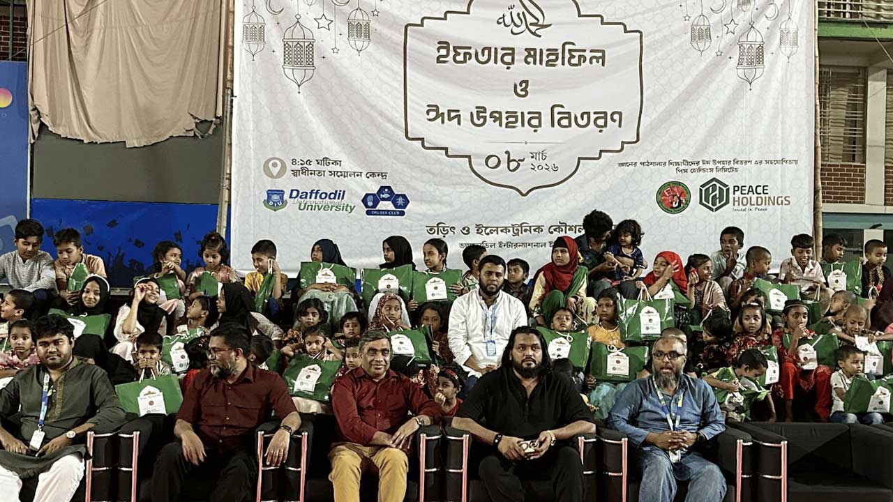 সামাজিক দায়বদ্ধতা ও মানবিক মূল্যবোধকে সামনে রেখে সুবিধাবঞ্চিত শিক্ষার্থীদের নিয়ে ইফতার মাহফিল ও ঈদ উপহার বিতরণ করা হয়। গত রোববার এ কর্মসূচির আয়োজন করে ড্যাফোডিল ইন্টারন্যাশনাল ইউনিভার্সিটির তড়িৎ ও ইলেকট্রনিক কৌশল (ইইই) বিভাগ।