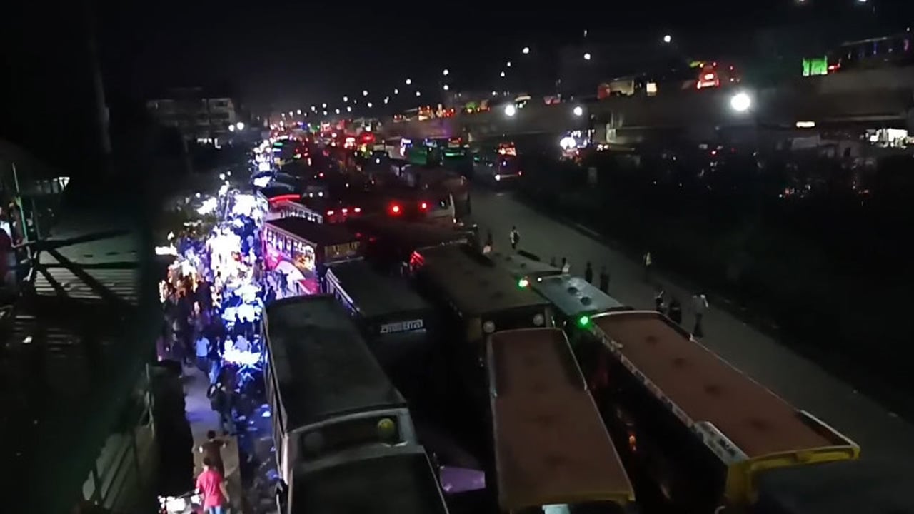 নাড়ির টানে ঘরে ফেরা মানুষ দিনভর স্বস্তির যাত্রা করলেও গতকাল বুধবার সন্ধ্যা থেকে তীব্র যানজট, ভাড়া নৈরাজ্য ও বৃষ্টির কারণে উত্তরাঞ্চলের পথে দেখা দিয়েছে সীমাহীন দুর্ভোগ। ঢাকা-টাঙ্গাইল মহাসড়কের গাজীপুরের ভোগড়া থেকে চন্দ্রা বাস টার্মিনাল পর্যন্ত ১৫ কিলোমিটার সড়কে চাকা ঘুরছেনা যানবাহনের। এদিকে রাত ১০ টা থেকে ফের শুরু হয়েছে মুষলধারে বৃষ্টি। এতে ধীরে ধীরে চন্দ্রা বাস টার্মিনাল থেকে উত্তরের সড়কে টাঙ্গাইল পর্যন্ত যানবাহণের ধীরগতি সৃষ্টি হয়েছে। সড়কের বিভিন্ন পয়েন্টে হাজার হাজার ঘরমুখী মানুষ বৃষ্টিতে ভিজেই যানবাহণের অপেক্ষায় অবস্থান করছেন। অনেকেই দুরপাল্লার বাস না পেয়ে পলিথিন মাথায় দিয়ে খোলা ট্রাক, পিকাপে উঠে পড়ছেন। চরম দুর্ভোগ নিয়ে ঘরমুখী মানুষের চোখে মুখে তবুও উচ্ছ্বাস।