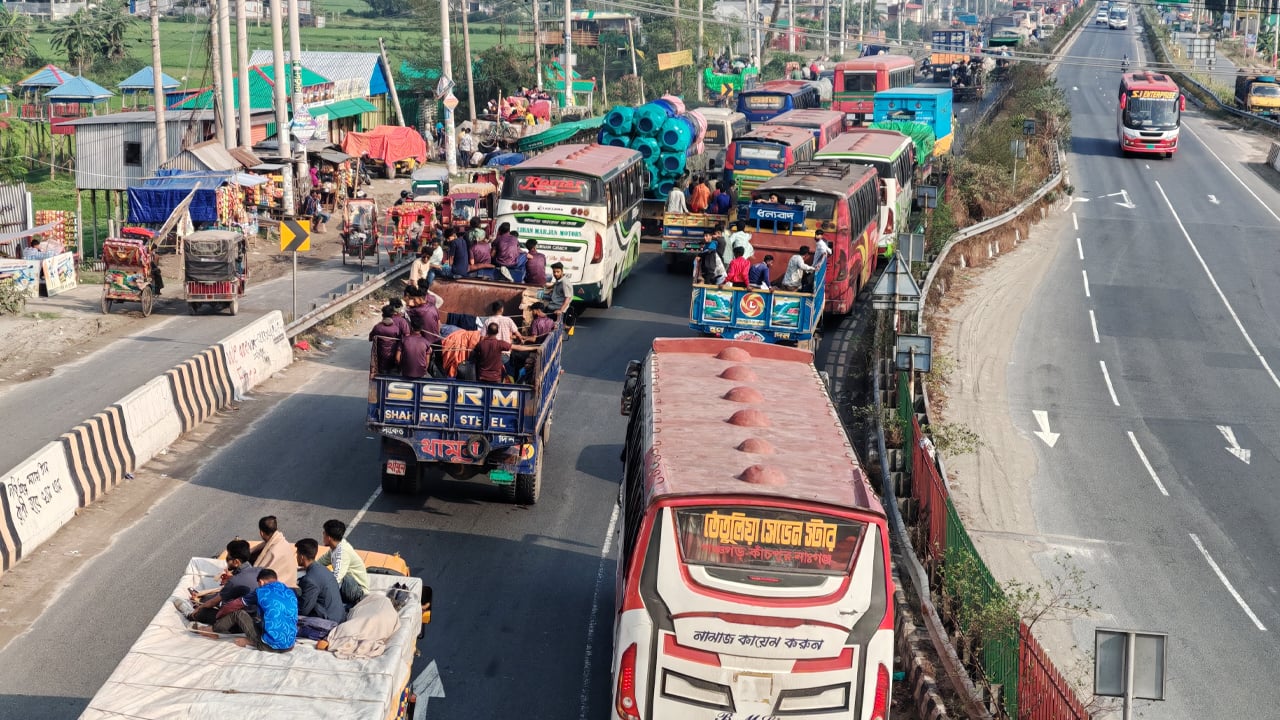 ঢাকা-টাঙ্গাইল মহাসড়কে ২০ কিলোমিটার যানবাহনের ধীরগতি