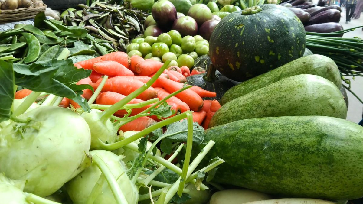 বাজার ঘুরে দেখা যায়, বর্তমানে প্রতি কেজি মুলা ও শালগম বিক্রি হচ্ছে ৪০ টাকায়। এ ছাড়া শিম, বেগুন ও মিষ্টি কুমড়া প্রতি কেজি ৫০ টাকা এবং পেঁপে ৪০ টাকায় মিলছে। ফুলকপি প্রতি পিস ৩০ থেকে ৪০ টাকা ও বাঁধাকপি ৪০ টাকায় বিক্রি হচ্ছে। আলুর কেজি এখন ৩০ টাকা। তবে পাকা টমেটো ও শসার কেজি এখনো ১০০ টাকায় স্থির রয়েছে। কাঁচা মরিচ বিক্রি হচ্ছে কেজি দরে ১২০ টাকা।