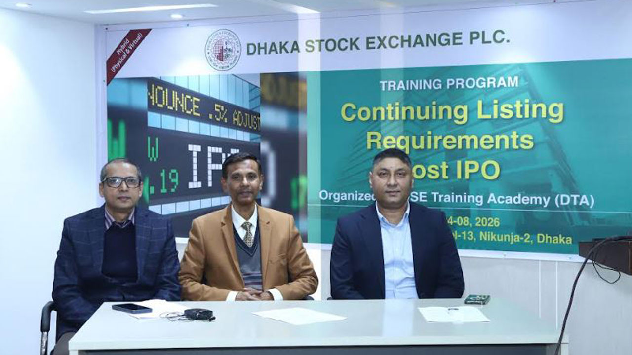 ঢাকা স্টক এক্সচেঞ্জের (ডিএসই) ট্রেনিং একাডেমিতে আয়োজিত ৩ দিনব্যাপী ‘আইপিওর অব্যাহত তালিকাভুক্তির প্রয়োজনীয়তা’ শীর্ষক প্রশিক্ষণ কর্মশালার সমাপণী দিনে গতকাল সোমবার (১২ জানুয়ারি) এসব কথা বলেন বক্তারা। দেশের পুঁজিবাজারে তালিকাভুক্ত বেশ কয়েকটি কোম্পানির প্রধান অর্থ কর্মকর্তা (সিএফও) এবং কোম্পানি সচিবসহ ঊর্ধ্বতন কর্মকর্তারা এই প্রশিক্ষণে অংশগ্রহণ করেন।