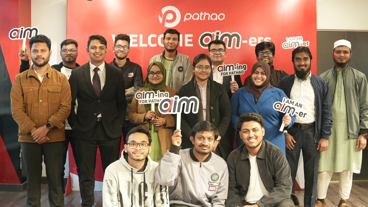২০২২ সালে যাত্রা শুরু করা 'AIM' বর্তমানে দেশের তরুণদের কাছে অন্যতম কাঙ্ক্ষিত একটি প্রোগ্রাম। ‘AIM’ শব্দটির পূর্ণরূপ হলো— সমস্যা অনুমান করা, সমাধানের ধারণা তৈরি করা এবং সম্পন্ন হওয়া পর্যন্ত ব্যবস্থাপনা করা। পাঠাওয়ের কর্মীরা যেভাবে প্রতিদিনের চ্যালেঞ্জ মোকাবিলা করেন, সেই একই অভিজ্ঞতা ইন্টার্নদের মধ্যে ছড়িয়ে দিতেই এই ফ্রেমওয়ার্ক তৈরি করা হয়েছে। এখানে কেবল তাত্ত্বিক শিক্ষা নয়, বরং রিয়েল-লাইফ প্রজেক্টে সরাসরি কাজ করার সুযোগ দিয়ে তরুণদের আত্মবিশ্বাস বৃদ্ধি ও পেশাদার ভিত্তি শক্ত করাই এই প্রোগ্রামের মূল লক্ষ্য।