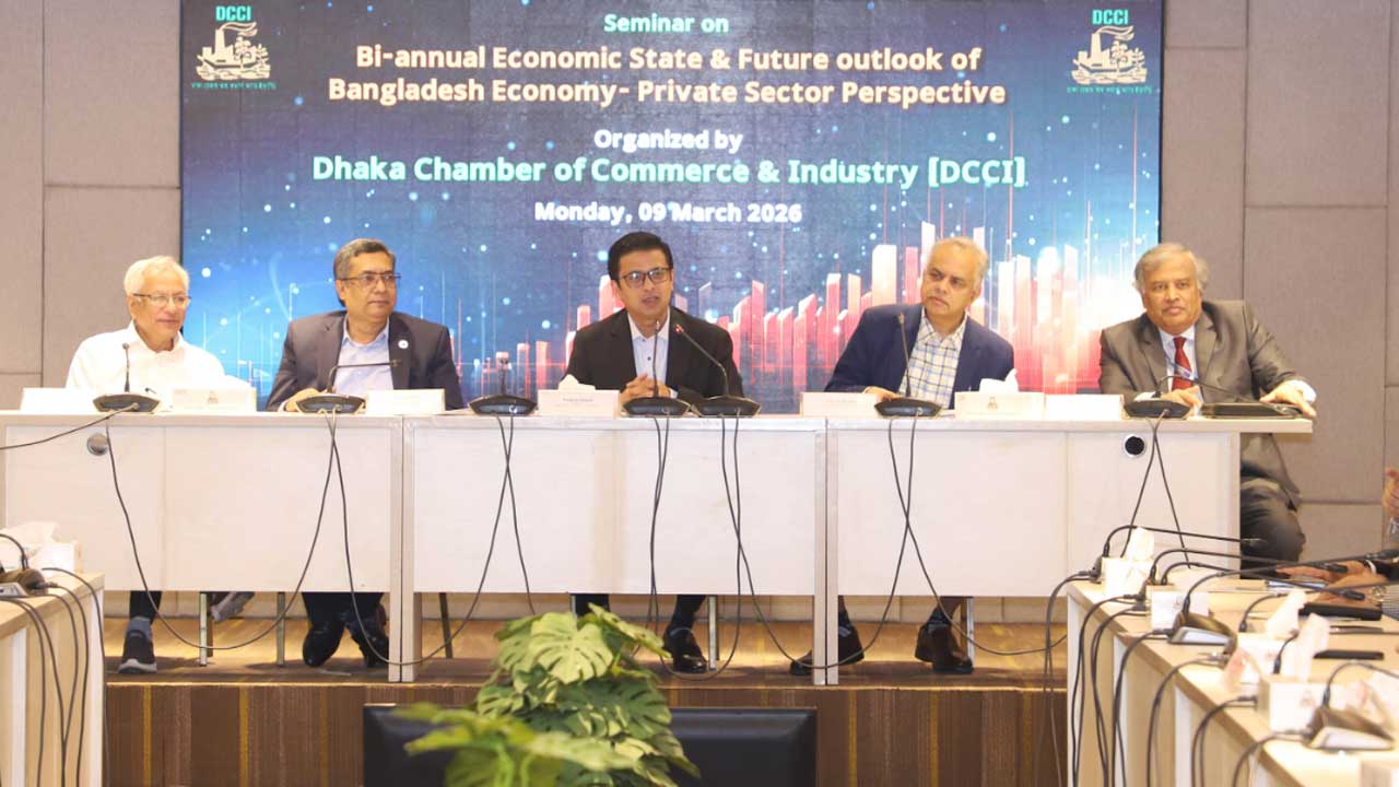 সোমবার (৯ মার্চ) ডিসিসিআই অডিটোরিয়ামে আয়োজিত ‘বেসরকারিখাতের দৃষ্টিতে বাংলাদেশের অর্থনীতির বিদ্যমান অবস্থা ও ভবিষ্যৎ পর্যালোচনা’ শীর্ষক সেমিনারে এ কথা বলেন আলোচকরা।