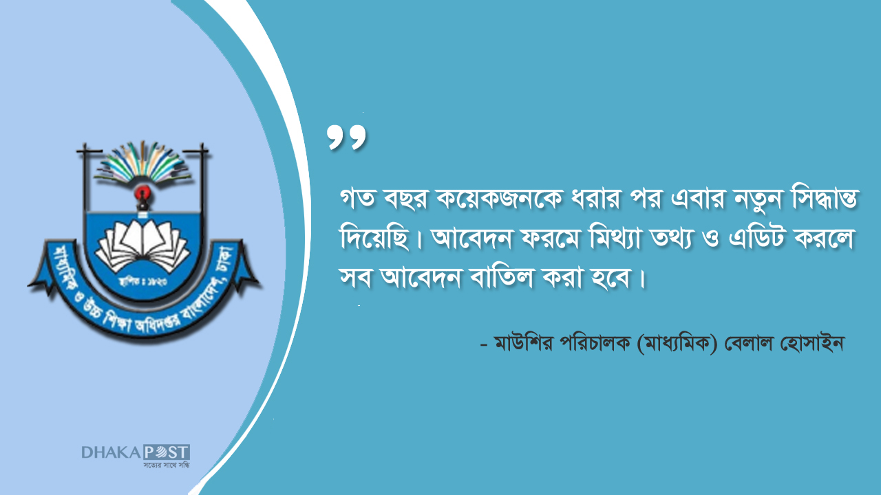 প্রফেসর বেলাল হোসাইন বলেন, গত বছর কয়েকজনকে ধরার পর এবার নতুন সিদ্ধান্ত দিয়েছি। আবেদনের ফরমে মিথ্যা তথ্য ও এডিট করলে সব আবেদন বাতিল করা হবে।