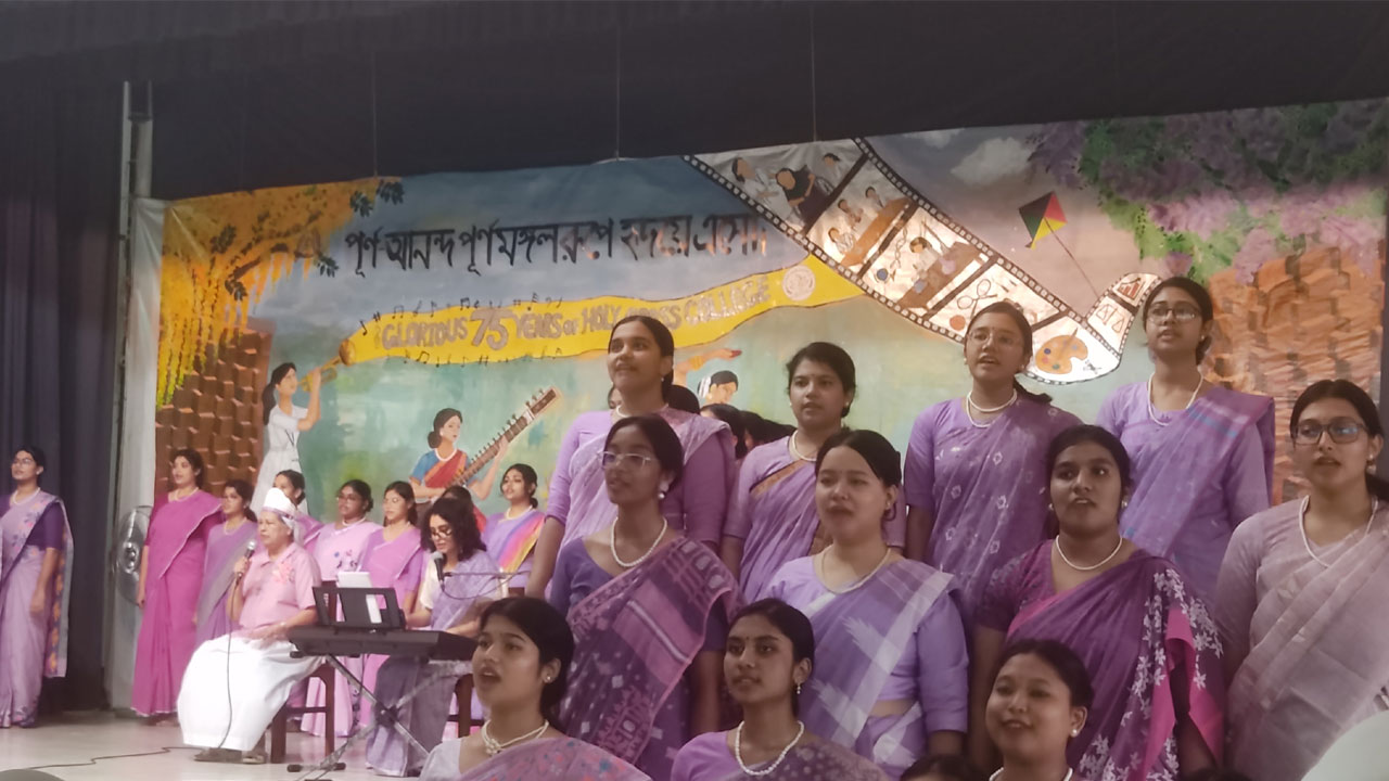 তেজগাঁওয়ের হলি ক্রস কলেজের আজকের সকাল ছিল অন্য দিনের চেয়ে অনেক আলাদা। নিয়মিত ক্লাস-পরীক্ষা আর পড়াশোনার রুটিনে খানিকটা ছেদ ফেলে সকাল থেকে পুরো কলেজ মেতে ওঠে প্রতিষ্ঠার ৭৫তম বর্ষপূর্তির উদযাপন ঘিরে৷ কলেজ প্রাঙ্গণটিতে ঢুকতেই চোখে পড়ে রঙিন ফেস্টুন, ফুলে সাজানো গেট আর ছাত্রীদের মুখে উৎসবের হাসি।