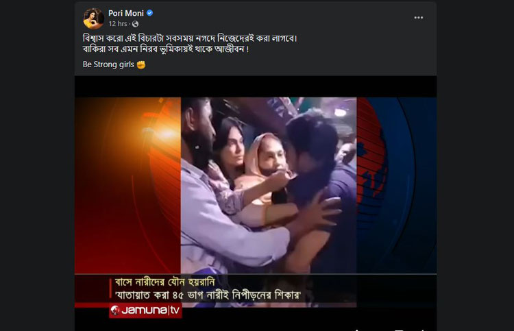 বাসে নারীদের যৌন হয়রানি, পরীমণির ক্ষোভ