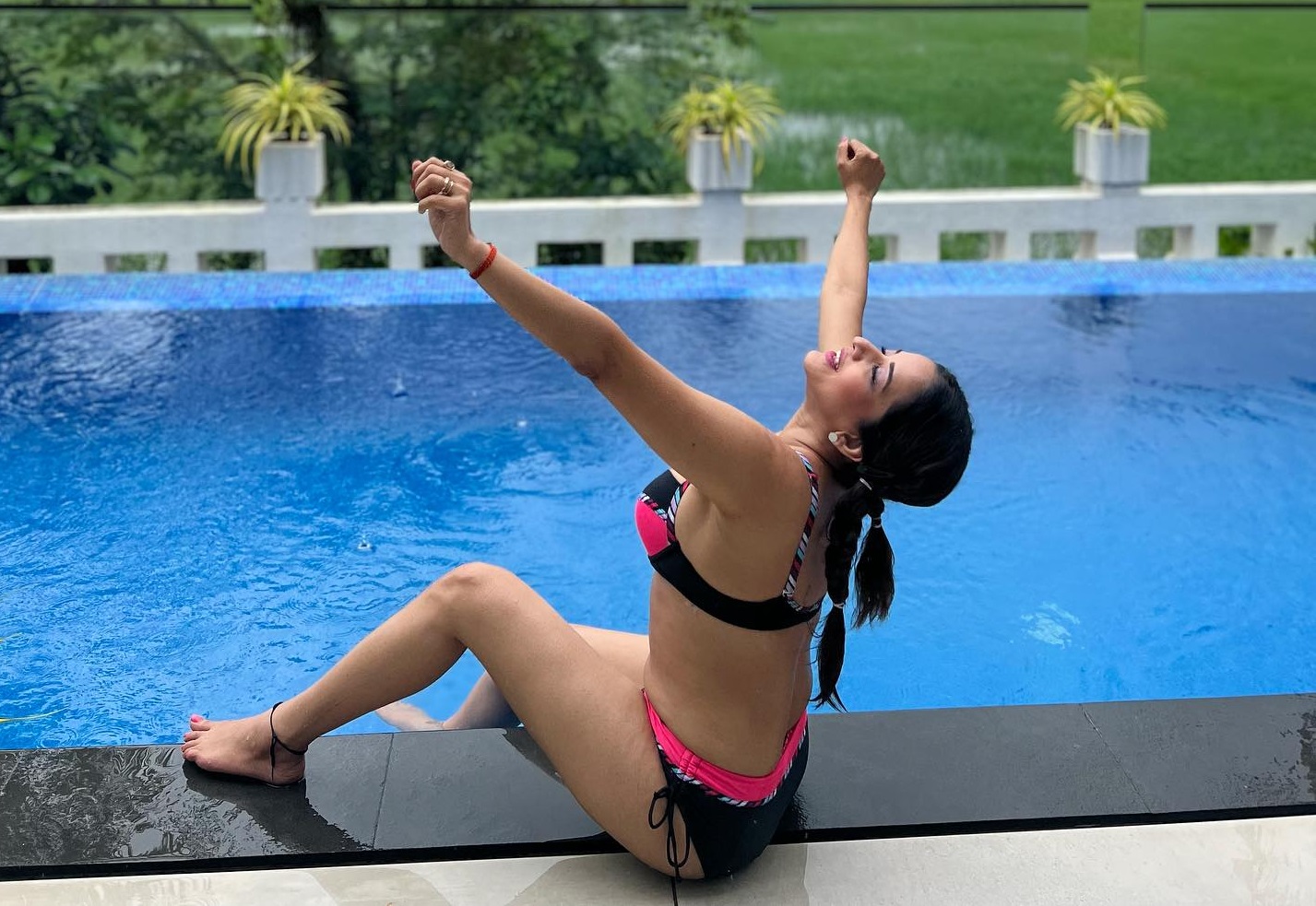 সম্প্রতি বিকিনিতে ইনস্টাগ্রামে ঝড় তুলেছেন এই নায়িকা। গোলাপি ও কালো রঙের অন্তঃবাসে সুইমিং পুলের পাশে বসে থাকতে দেখা গেছে তাকে।