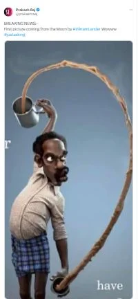 জানা গেছে, সামাজিক যোগাযোগ মাধ্যমে একটি কার্টুন শেয়ার করেছিলেন প্রকাশ। যেখানে এক ব্যক্তিকে বেঁকে গিয়ে পেয়ালায় চা ঢালতে দেখা গেছে। ক্যাপশনে হ্যাশট্যাগ #justasking লিখে তিনি লিখেছেন, ব্রেকিং নিউজ- বিক্রম লান্ডেরের পাঠানো চাঁদ থেকে পাঠানো প্রথম ছবি।