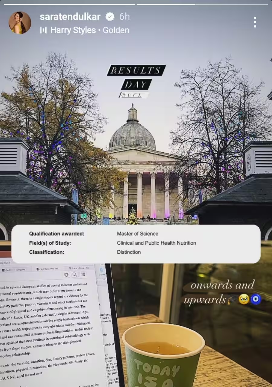 ভক্তদের সঙ্গে নিজের জীবনের অন্যতম এই সুখবরটি শেয়ার করেছেন সারা নিজেই। ইনস্টাগ্রামে এক স্টোরিতে তিনি জানান, ‘ক্লিনিক্যাল ও হেলথ নিউট্রিশন’ বিষয় নিয়ে স্নাতকোত্তর স্তরের পড়া শেষ করলেন।