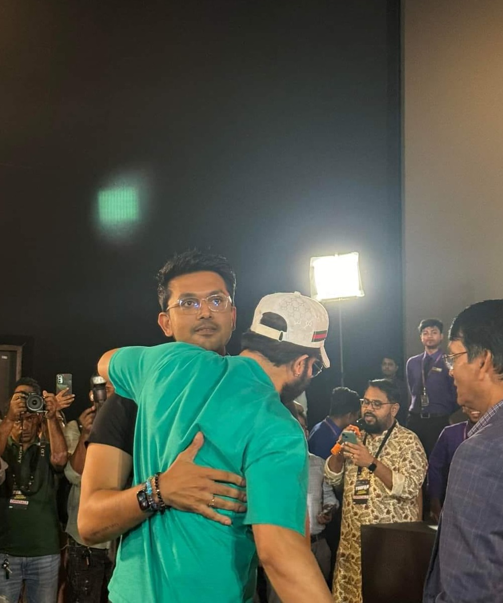 আরিফিন শুভ’র এমন কাণ্ডে অনেকটা অপ্রস্তুত হয়ে পড়েন শাকিব খান। তখনই শুভকে বুকে টেনে জড়িয়ে ধরেন তিনি। আর এ দৃশ্য আটকে যায় ক্যামেরায়। যা এখন সামাজিক মাধ্যমে ভাইরাল।