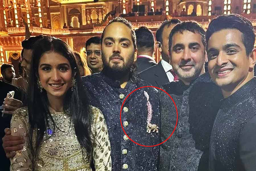 টাইগার ব্রোচ উইথ পিঙ্ক ফেদার: দীর্ঘ প্রাক-বিবাহ পর্ব শেষে ১২ জুলাই চার হাত এক হয়েছে অনন্ত-রাধিকার। রোববার অর্থাৎ ১৪ তারিখ ছিল বৌভাত বা ‘মঙ্গল উৎসব’। সেই অনুষ্ঠানেও অনন্ত বুকে দেখা গেল বিশেষ একটি ব্রোচ।