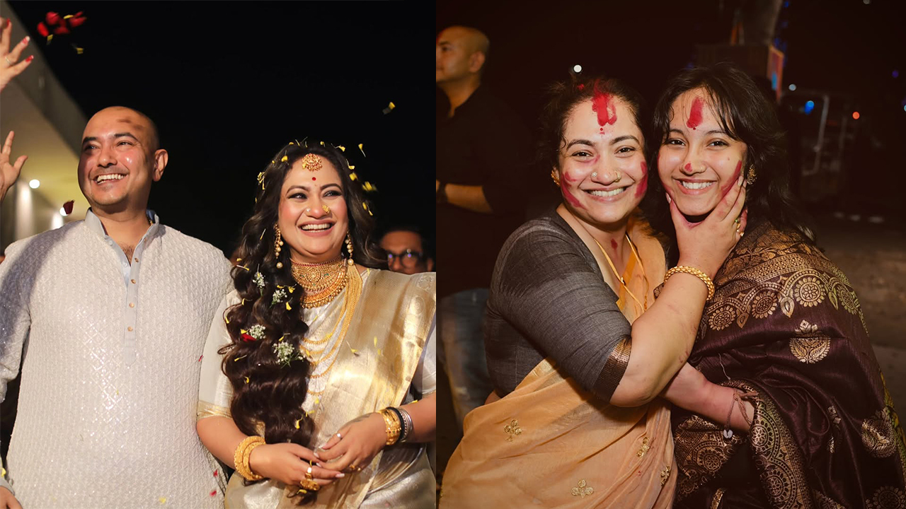 মল্লিকা ব্যানার্জির বিয়েতে তার মেয়ের অংশগ্রহণ ও অভিনেত্রী কন্যার হবু বাবার সঙ্গে খুনসুটিতে মেতে ওঠার মুহূর্ত মন কাড়ে সবার। ইনস্টাগ্রামে ভাইরাল হওয়া ভিডিওতে দেখা যায়, লাল শাড়িতে বিয়ের সাজে সেজে উঠেছেন মল্লিকা। চারপাশে পরিবারের সদস্য এবং বন্ধুরা তার সঙ্গে।