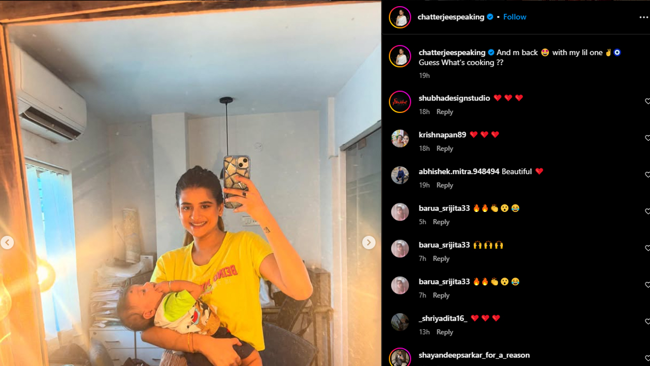 সামাজিক যোগাযোগ মাধ্যমে শেয়ার করা ছবিতে অভিনেত্রীকে দেখা যায়, ছেলেকে কোলে নিয়ে আছেন তিনি। ভারতীয় গণমাধ্যমকে এ বিষয়ে রূপসা বলেন, ‘একটু অন্যরকম ফরম্যাট। ওয়েবের কাজ। সবে লুক টেস্ট হলো। তাই ওকে সঙ্গে নিয়েই এসেছি। এবং আগামীতেও ওকে নিয়েই কাজটা করব।’