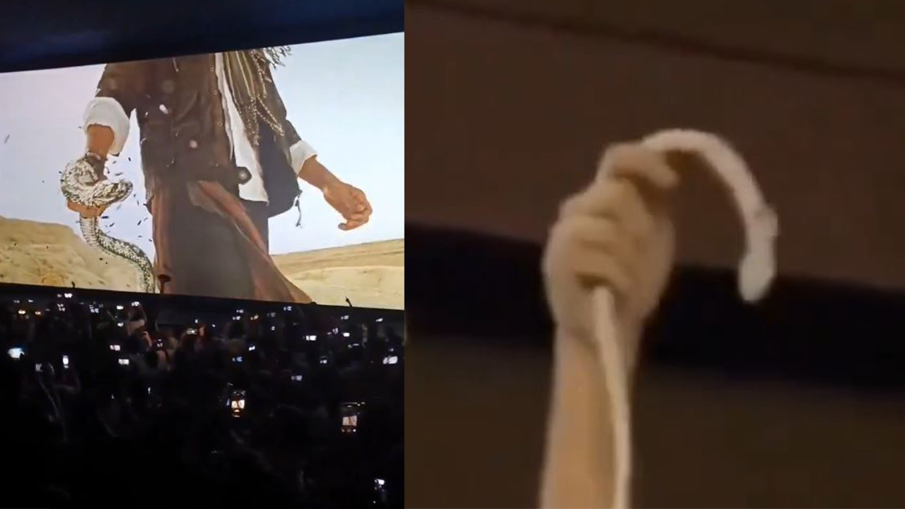 ভাইরাল সেই ভিডিওতে দেখা যায়, প্রথম দেখায় অনেকে সেটাকেও খেলনা সাপ ভাবেন। কিন্তু গোল বাঁধে ওই ব্যক্তির হাতে থাকা সাপ যখন কিলিবিলিয়ে ওঠে। সেই দৃশ্য দেখে হুড়োহুড়ি পড়ে যায় প্রেক্ষাগৃহের অন্দরে; সৃষ্টি হয় আতঙ্কের পরিবেশ।