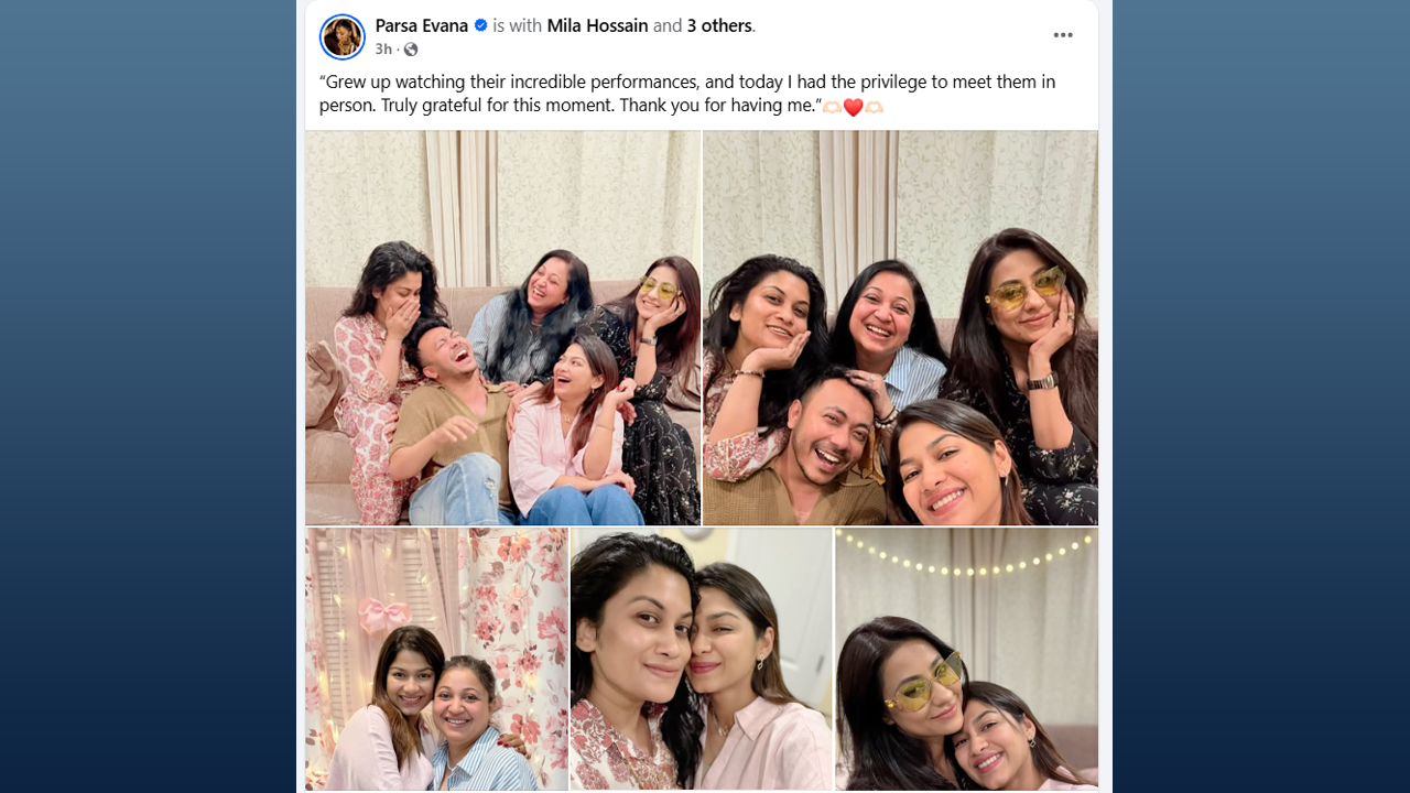এই পোস্টের মাধ্যমে পারসা তার দীর্ঘদিনের স্বপ্ন পূরণের আনন্দ ভাগ করে নিয়েছেন। শেয়ার করা ছবিতে দেখা যায়, যাদের অভিনয় দেখে বড় হয়েছেন পারসা তাদের সঙ্গে গেট টুগেদার করেছেন। পারসার এই পোস্টটি মুহূর্তেই তার ভক্ত-অনুরাগীদের মধ্যে সাড়া ফেলেছে।