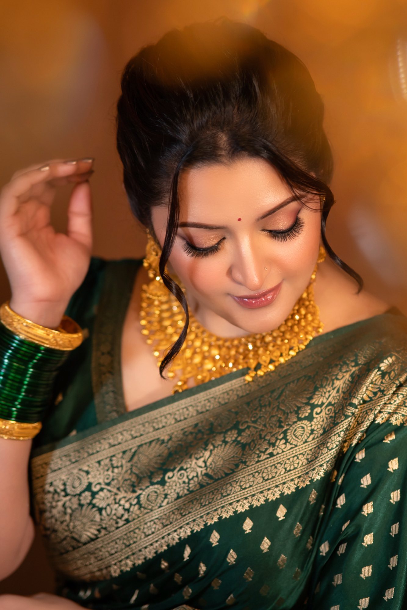 সেই ছবিগুলোতে দেখা যায়, সবুজ বেনারসি শাড়ির সঙ্গে ভারী গহনায় নিজেকে মেলে ধরেছেন পরীমণি। ঝুমকা থেকে শুরু করে সোনার হার- নানা কিছুই ছিল; হাতে শাড়ির সঙ্গে ম্যাচিং করে সবুজ রেশমি চুড়ি। ক্যাপশনে লিখেছেন, ‘আর আমি একটাই পরী!’।