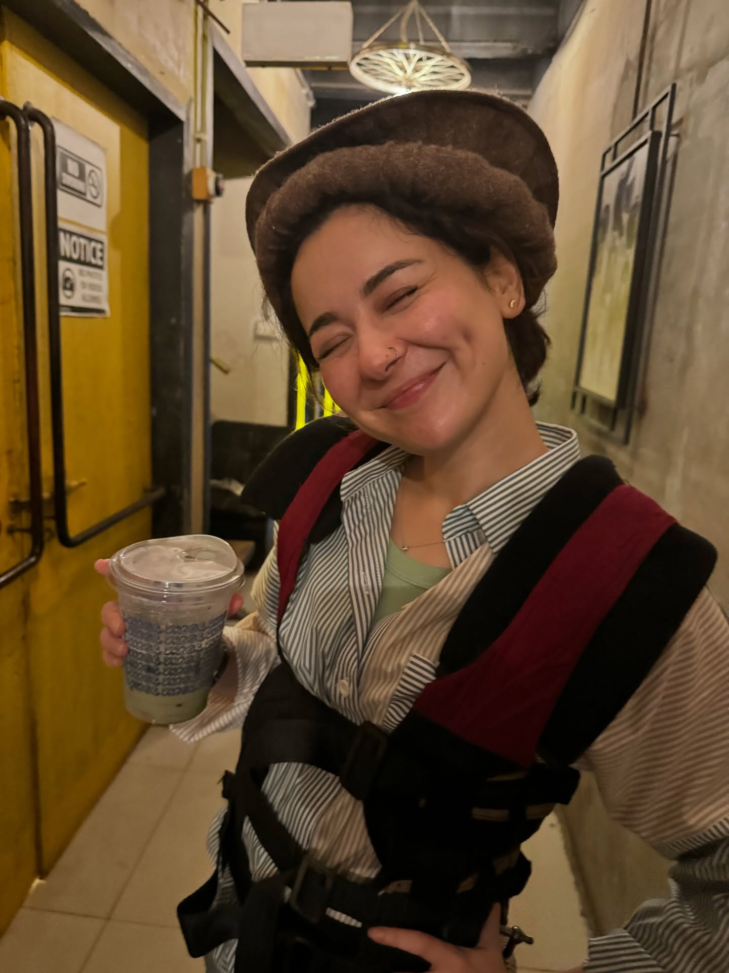 হানিয়াকে এই ছবিতে খুব হাসিখুশি দেখা যাচ্ছে। তিনি সম্ভবত বাইরে কোথাও আছেন এবং মাথায় একটি ঐতিহ্যবাহী টুপি পরেছেন। একটি স্ট্রাইপড শার্ট এবং কালো ব্যাকপ্যাক তার পোশাককে আরও সুন্দর করেছে।