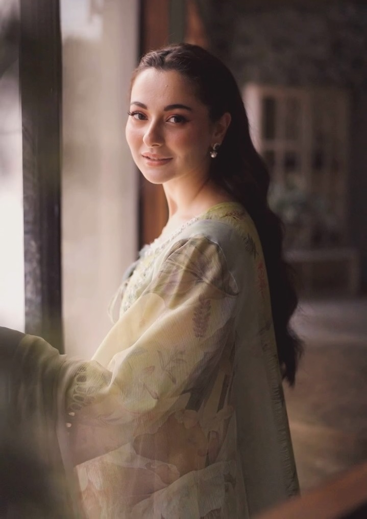 হালকা রঙের একটি পোশাকে দেখা যাচ্ছে হানিয়াকে। তিনি একটি জানালার পাশে দাঁড়িয়ে আছেন এবং ক্যামেরার দিকে মিষ্টি হেসে তাকিয়ে আছেন। তার এই সরল এবং মনোমুগ্ধকর দৃষ্টি যে কারও মন জয় করে নেবে।