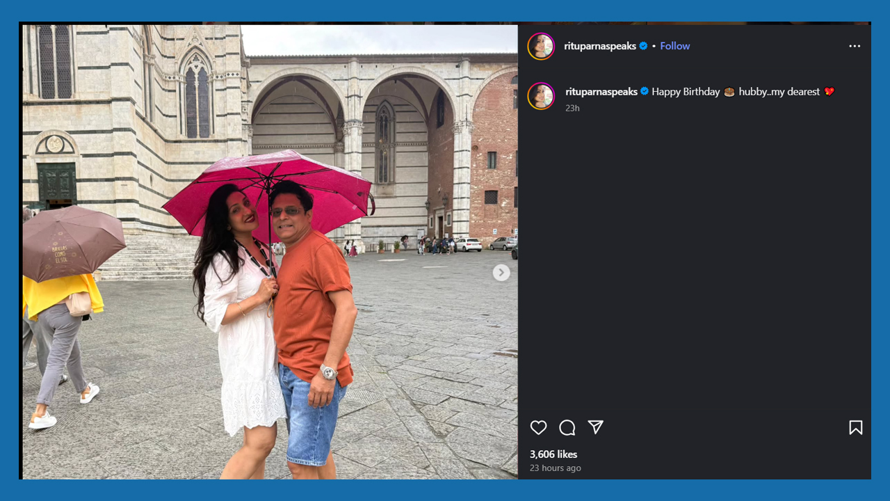 সিনেমায় অভিনয়ের পাশাপাশি ব্যক্তিগত জীবনও সমান তালে সামলে চলেছেন ওপার বাংলার জনপ্রিয় অভিনেত্রী ঋতুপর্ণা সেনগুপ্ত। অভিনয়, সংসার, মাতৃত্ব সব দায়িত্বেই তিনি এককথায় অনন্যা। সোমবার স্বামী সঞ্জয় চক্রবর্তীর জন্মদিনে মিষ্টি শুভেচ্ছা জানালেন ঋতুপর্ণা।