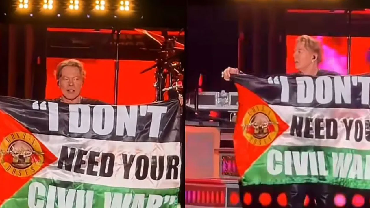 গত ৭ অক্টোবর (মঙ্গলবার) রাতে কলম্বিয়ার বোগোটার এসটাডিও এল ক্যাম্পিন স্টেডিয়ামে ব্যান্ডটির কনসার্ট ছিল। এ সময় প্রধান গায়ক অ্যাক্সেল রোজ মঞ্চে ফিলিস্তিনের পতাকা হাতে তুলে নিয়ে গাজায় যুদ্ধ বন্ধের প্রতি সংহতি প্রকাশ করেন।