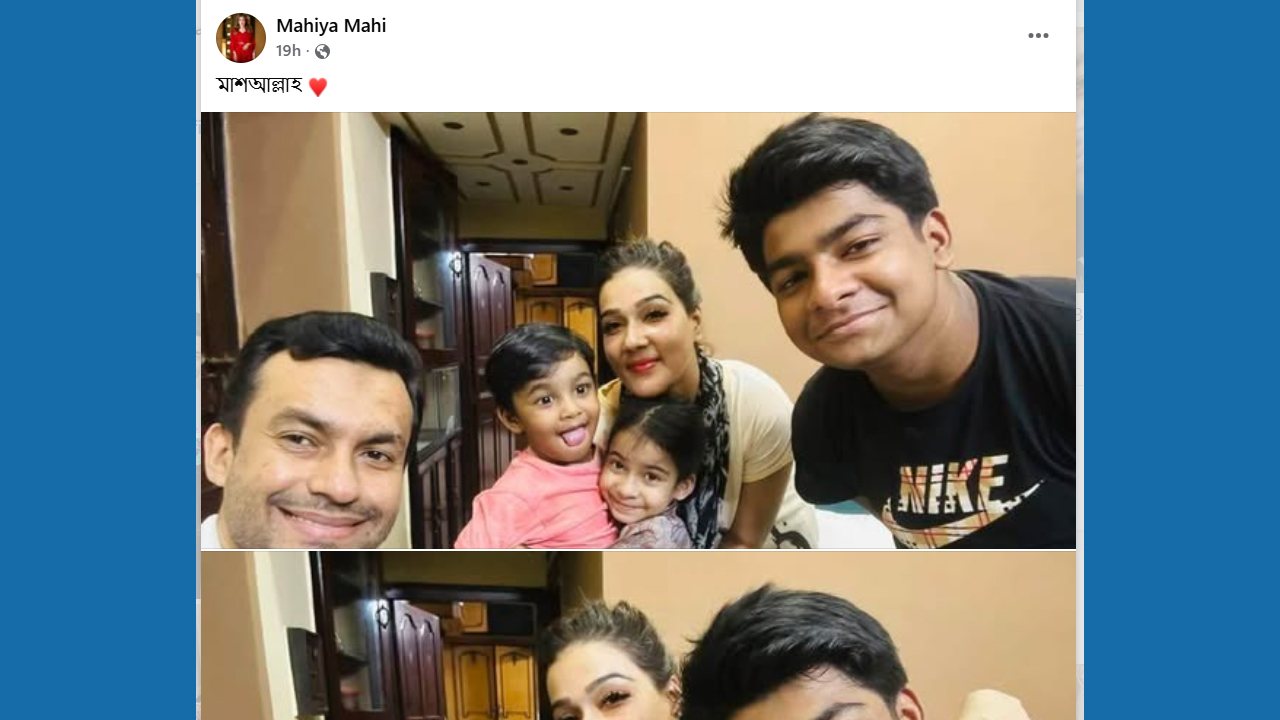 ছবি দুটির ক্যাপশনে মাহি লিখেছেন, ‘মাশাআল্লাহ।’ সঙ্গে জুড়ে দিয়েছেন ভালোবাসার ইমোজি। মজার বিষয় হলো, মাহি ছবিটি পোস্ট করার ঠিক এক ঘণ্টা আগেই একই ছবি নিজের ফেসবুক প্রোফাইলে পোস্ট করেন রাকিব সরকারও।